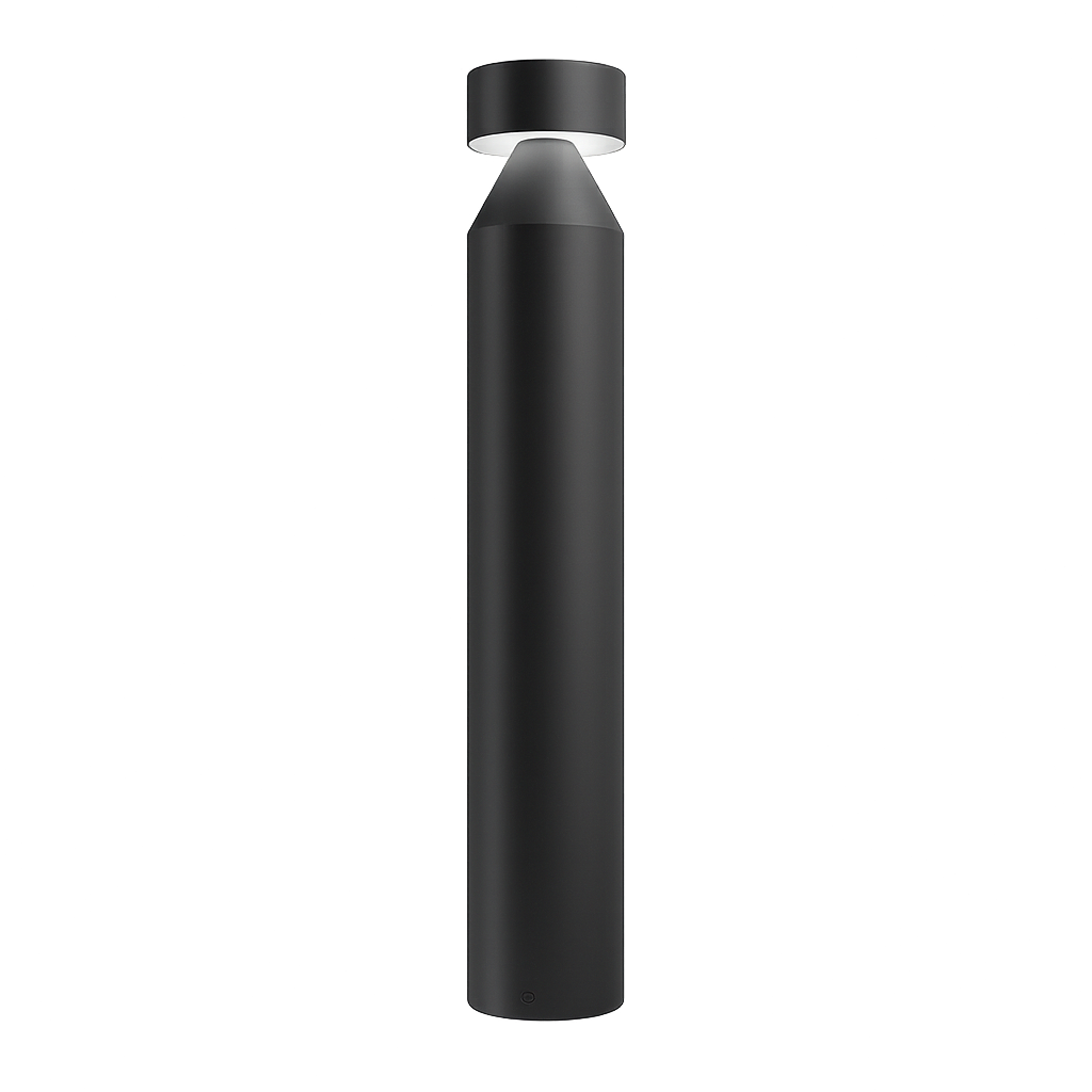 Miniposte luminoso de diseño minimalista y elegante, disponible en alturas de 500 mm y 1000 mm, ideal para iluminar caminos peatonales, áreas de acceso, centros comerciales o espacios hospitalarios. Su sistema de iluminación radial asegura una cobertura uniforme, funcionando como iluminación de cortesía en exteriores. Fabricado con acabado negro satinado y diseñado para integrarse de manera estética en ambientes urbanos.