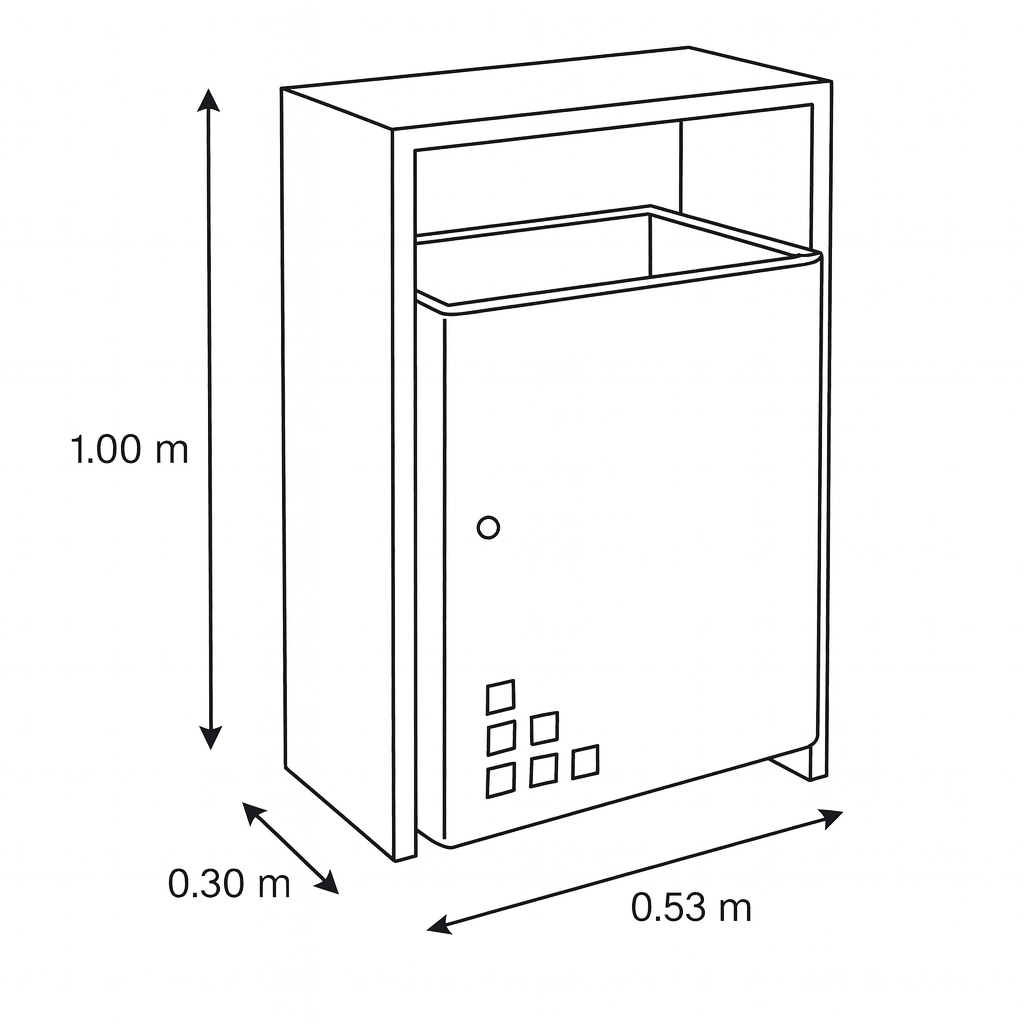 El Bote de Basura Patmos JIMBAS-22 destaca por su diseño moderno, funcional y compacto, ideal para entornos urbanos, comerciales y corporativos. Fabricado completamente en acero galvanizado, ofrece una excelente resistencia estructural y una apariencia sobria que se adapta a parques, plazas, centros comerciales, oficinas y avenidas.