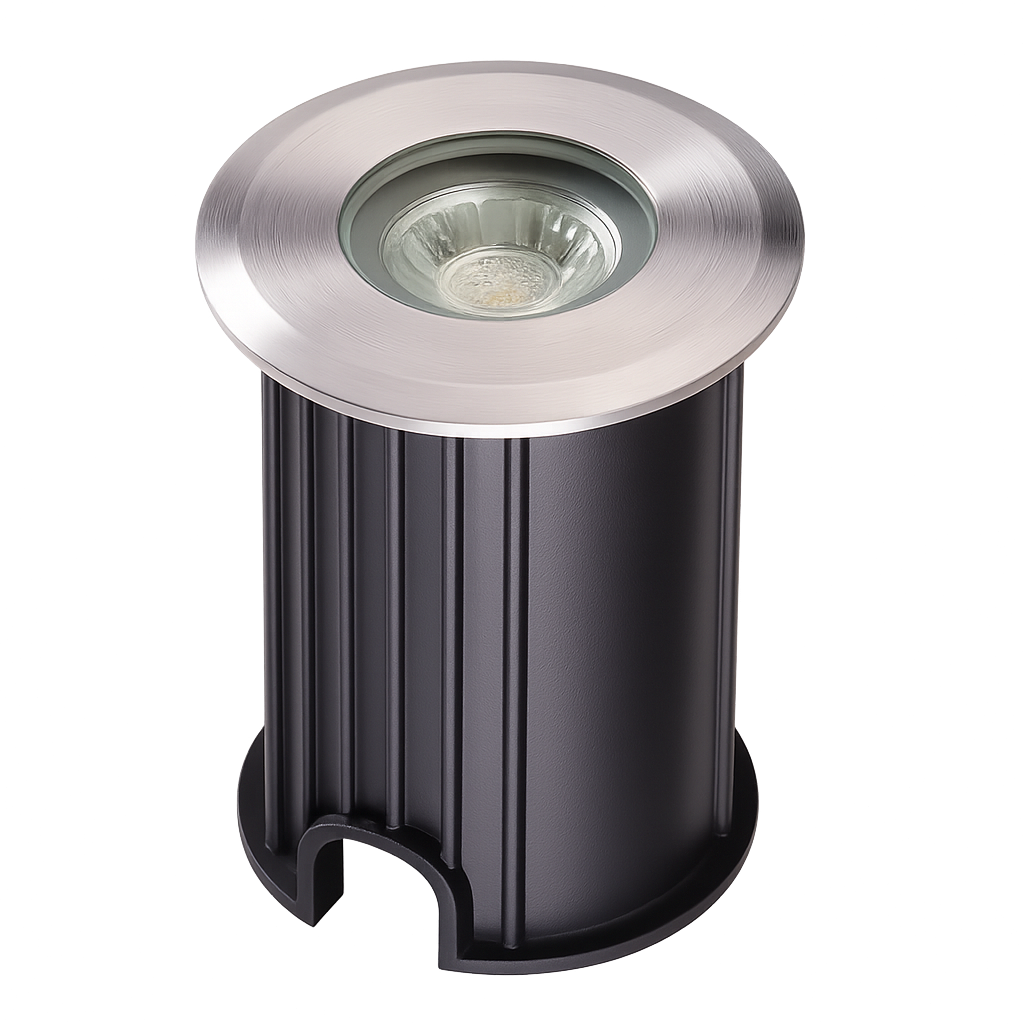 Empotrable LED diseñado para instalación en exteriores, ideal para iluminar caminos, jardines, escalones, pasillos o muros con un toque discreto, moderno y funcional. Su acabado metálico combinado con cuerpo negro lo convierte en una pieza elegante y resistente.