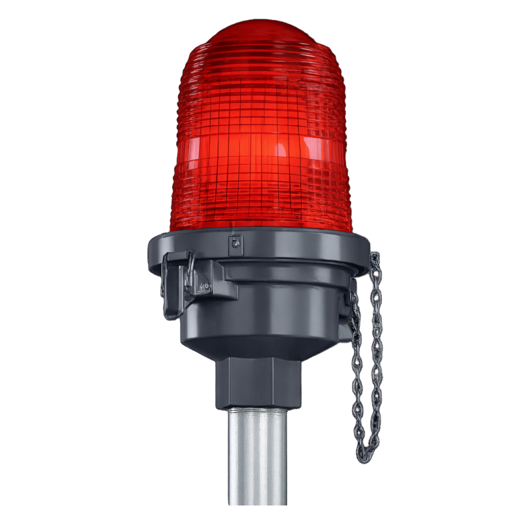 Fabricada con cuerpo de aluminio inyectado a presión tipo die cast, esta luminaria ofrece una estructura robusta y de alta resistencia mecánica, adecuada para aplicaciones en ambientes exteriores e interiores. El lente Fresnel de policarbonato permite una visibilidad omnidireccional de 360°, asegurando que la señal luminosa sea perceptible desde cualquier ángulo de aproximación aérea, incluso en condiciones ambientales adversas.