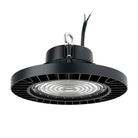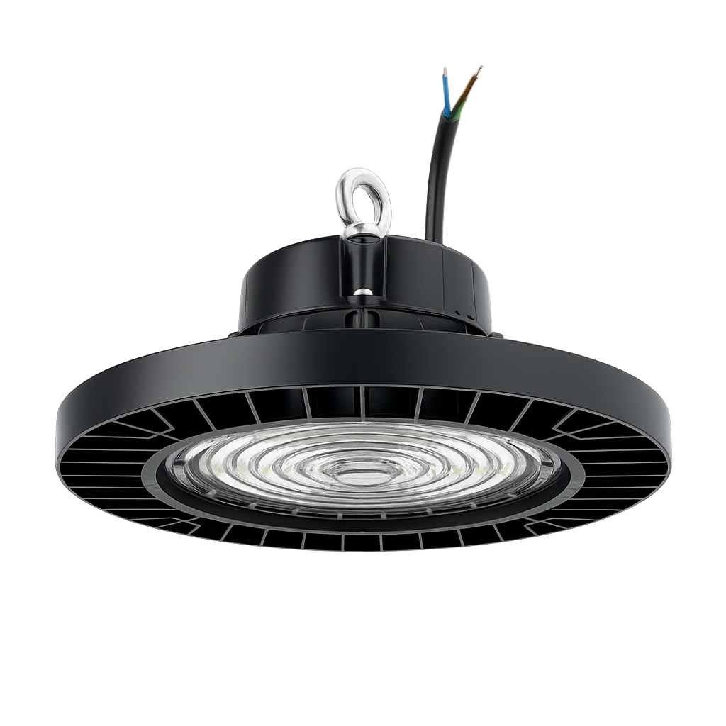 Luminario industrial tipo UFO de alta eficiencia diseñado para ofrecer un rendimiento luminoso sobresaliente en espacios amplios y demandantes. Con una potencia de 150W y una luz blanca fría de 5700K, este modelo proporciona un flujo luminoso de 20,000 lúmenes, ideal para garantizar visibilidad, seguridad y confort visual.