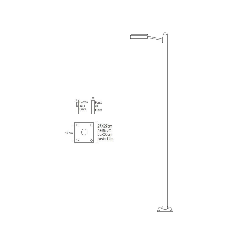 Poste recto circular de 5 metros de altura, construido con tubo de acero al carbón cédula 30 de 3” nominal. Su diseño limpio y resistente lo convierte en una excelente opción para instalaciones de alumbrado público, vialidades, estacionamientos o áreas recreativas.