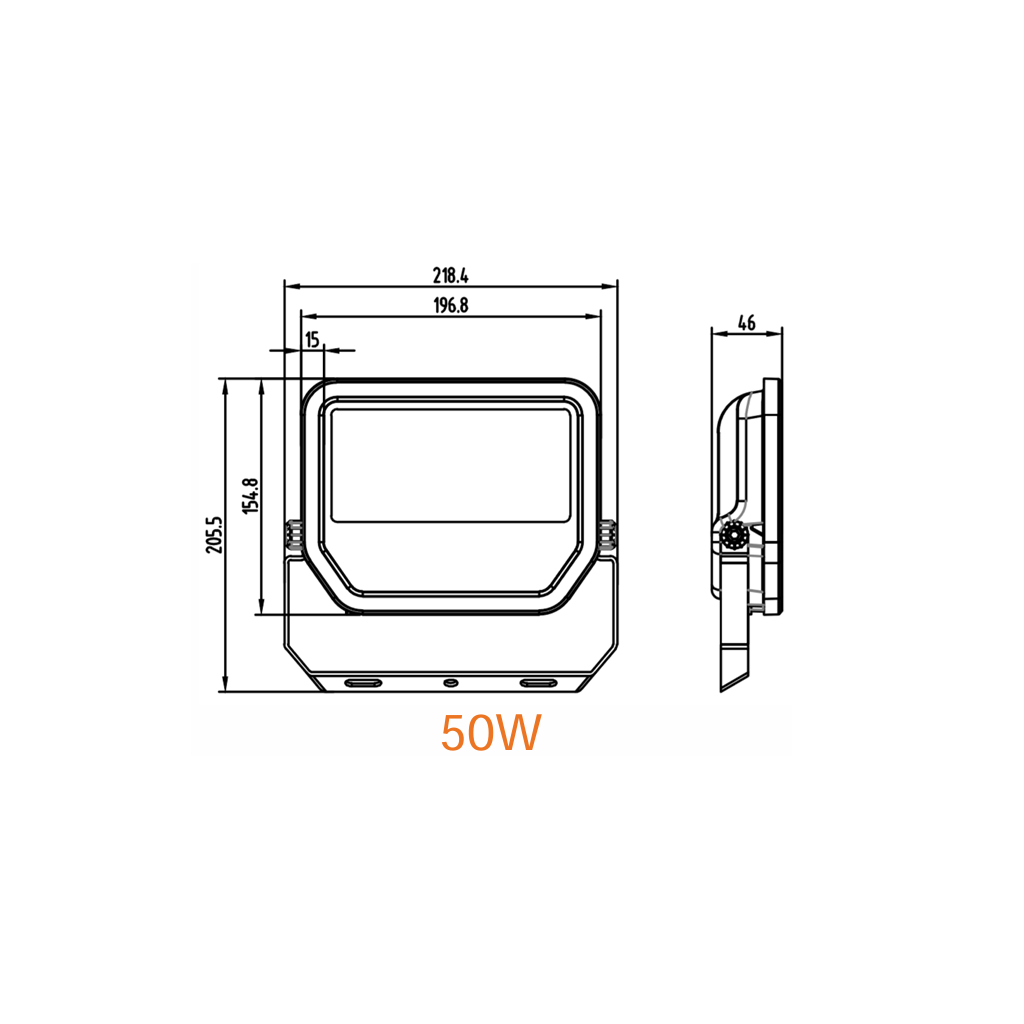 Cuenta con un cuerpo robusto en acabado negro, preparado para resistir condiciones ambientales exigentes. Incorpora un soporte rotativo ajustable hasta 180°, que permite orientar el haz luminoso con precisión según las necesidades del área a iluminar. Su construcción sólida facilita la instalación en muros, fachadas y estructuras exteriores.