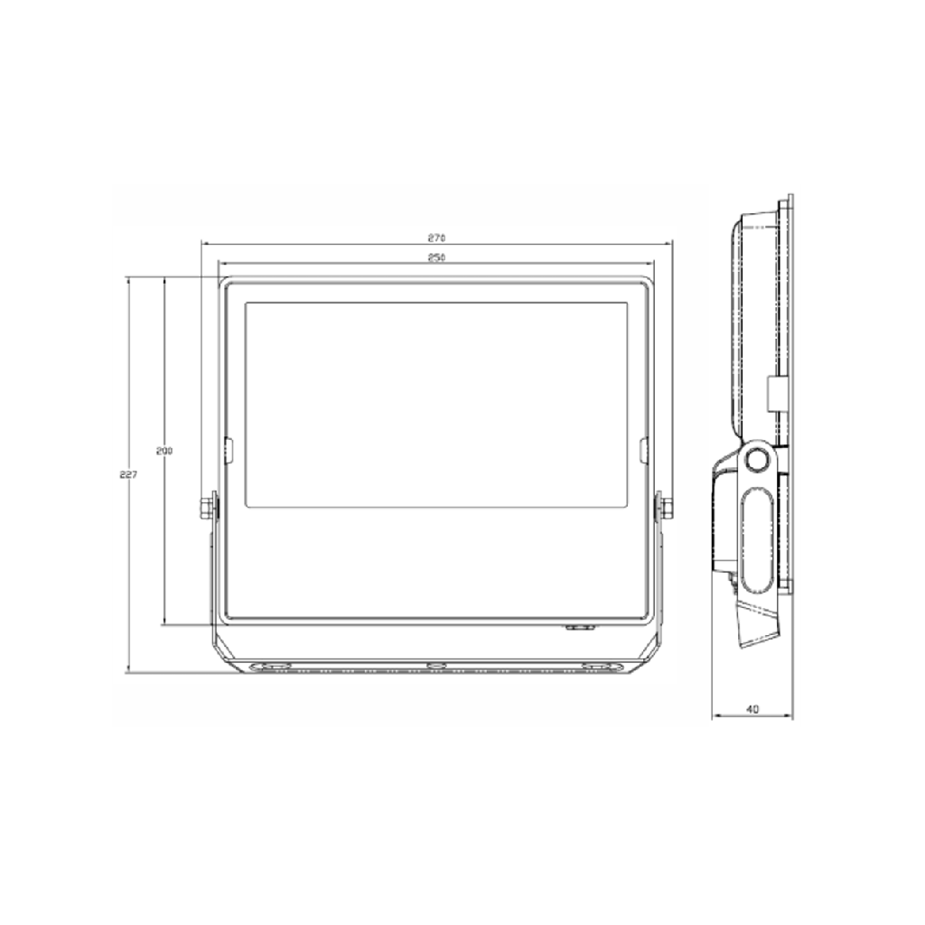 Cuenta con un cuerpo robusto de aluminio en acabado negro, preparado para operación en exteriores. Incorpora un difusor de vidrio templado, que proporciona alta resistencia mecánica y una adecuada distribución del haz luminoso. Su soporte ajustable facilita la orientación precisa del reflector según las necesidades del proyecto.